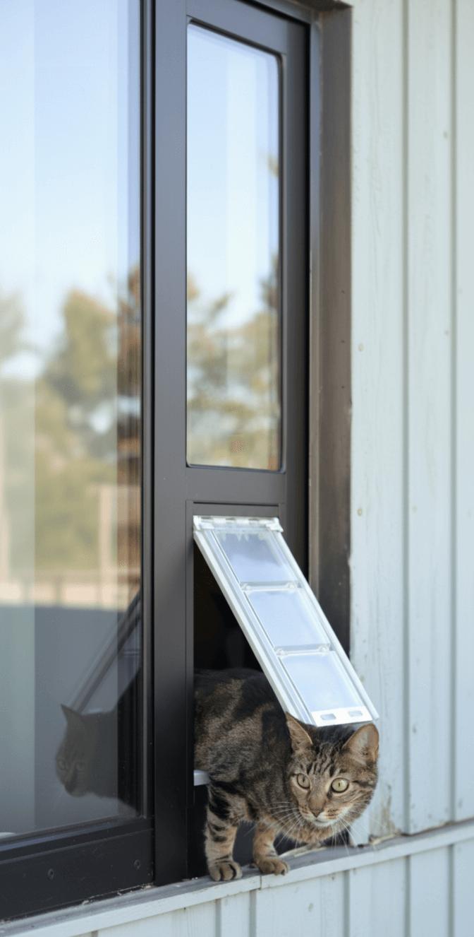 - Seamless integration:Â Removable panel with built-in cat door fits into horizontal sliding window tracks
